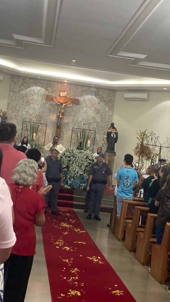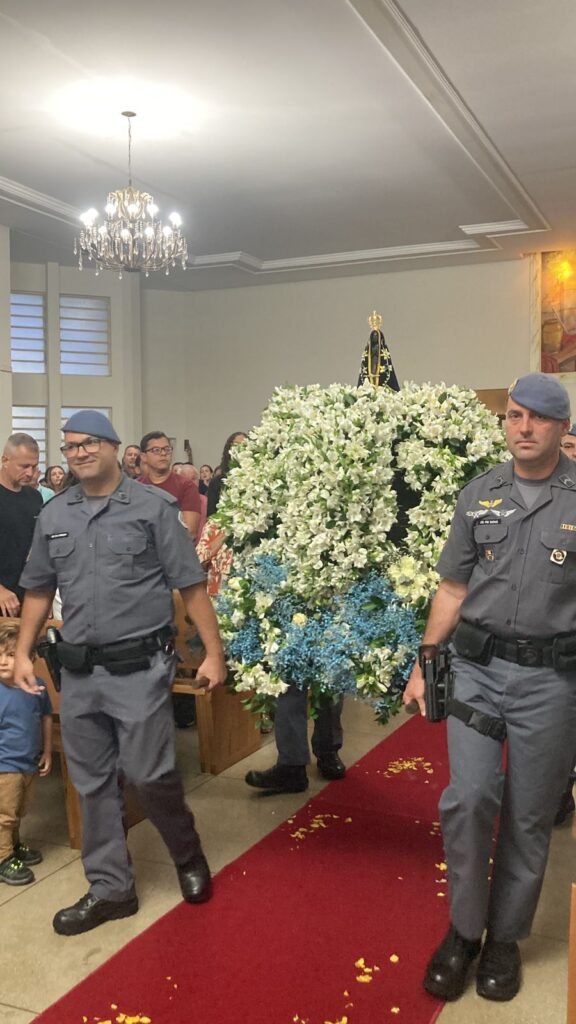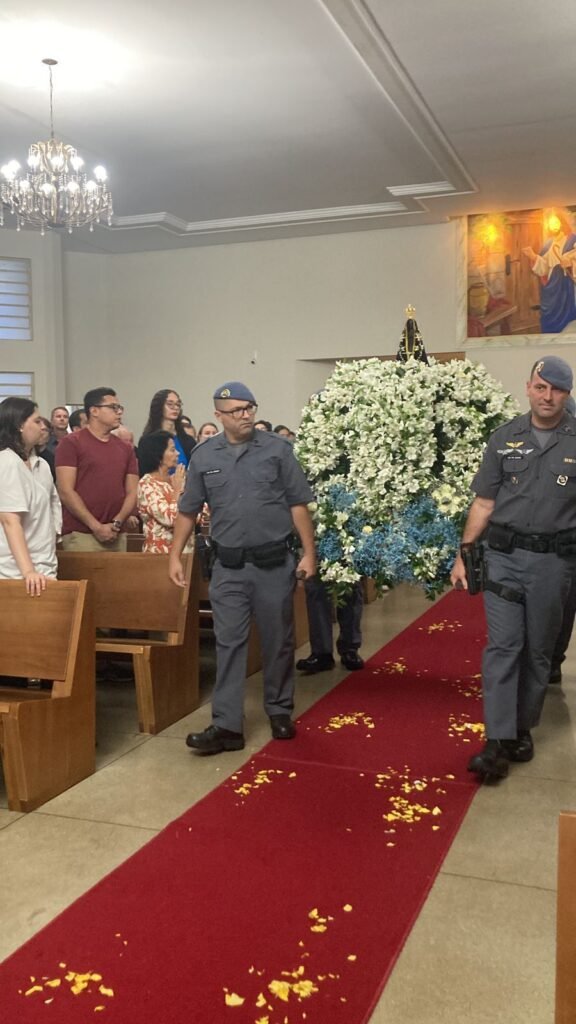 O convite foi feito pelo pároco Padre Alexandre Santos, que solicitou o apoio da corporação para integrar o ato simbólico de abertura da Missa em honra à Padroeira, com a entronização do andor de Nossa Senhora Aparecida e da Bandeira do Brasil. A cerimônia ocorreu às 18h, nas dependências da igreja localizada na Rua Anchieta, nº 399, no bairro Vila Germano.