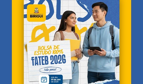 A Prefeitura de Birigui, por meio da FUMDEB (Fundação Municipal de Ensino de Birigui), fará a concessão de 60 bolsas de estudo integrais para alunos de baixa renda ingressantes no ano letivo de 2026, regularmente matriculados na FATEB (Faculdade de Ciências e Tecnologia de Birigui).
