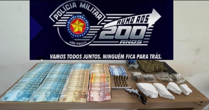 PM estoura ponto de tráfico em rancho de Buritama e apreende arma de fogo, munições, drogas e dinheiro