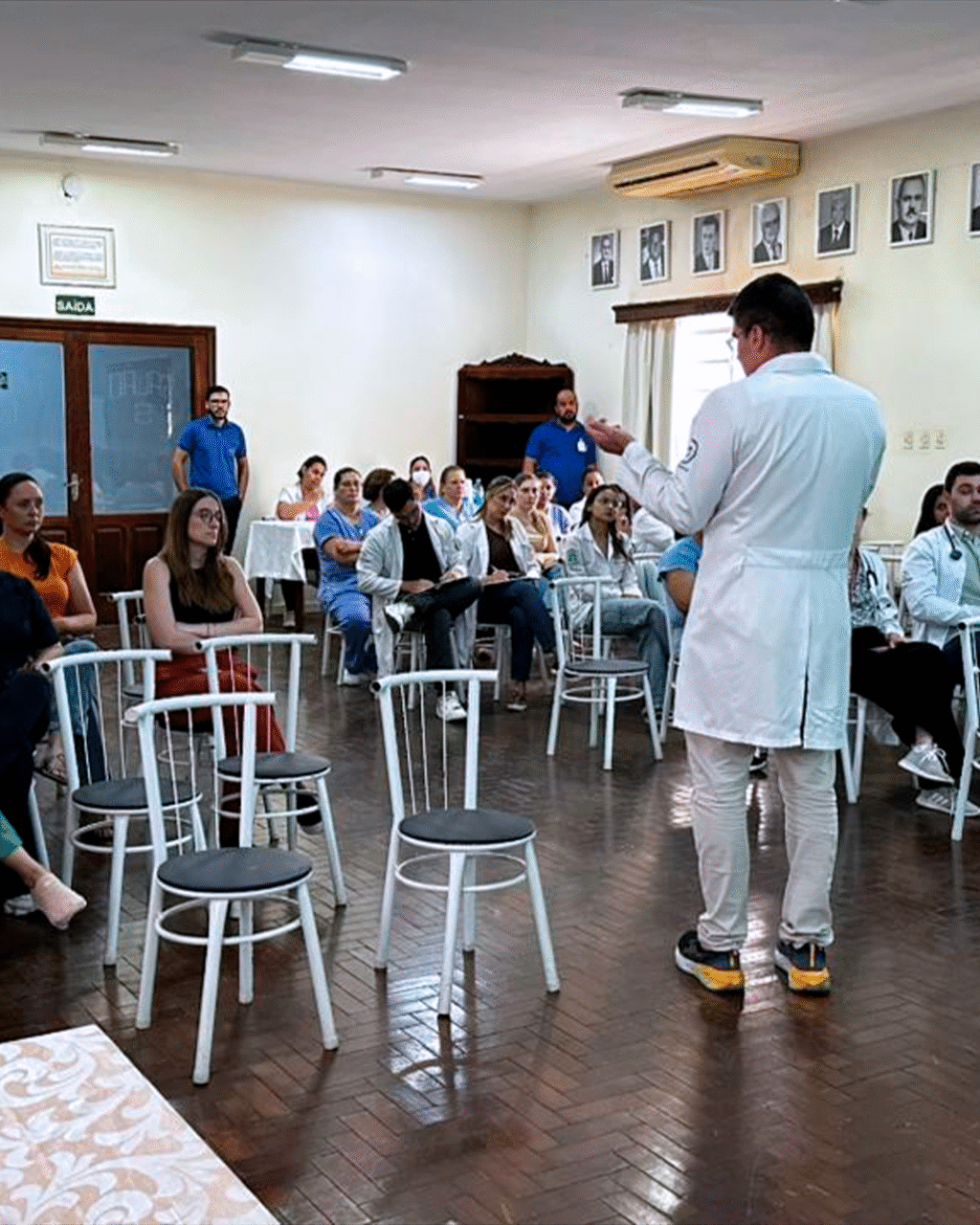 Nesta terça-feira (7), a Santa Casa de Birigui promoveu uma palestra sobre “Manejo clínico para atendimento em pacientes com suspeita de intoxicação por metanol”, ministrada pelo médico infectologista Dr. Igor Barcellos Precinoti, no salão nobre da instituição. O encontro reuniu médicos, enfermeiros, técnicos do hospital, além de profissionais do Pronto-Socorro Municipal e de outras unidades de saúde da região.