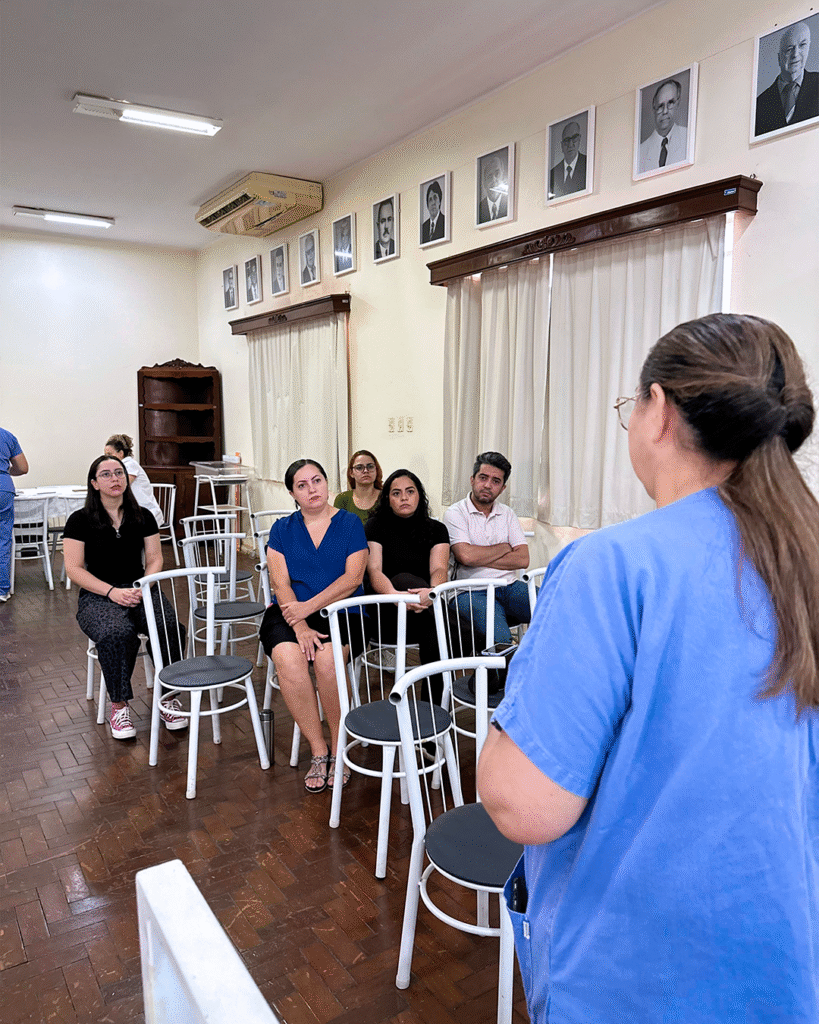 Durante a atividade, a CCIH destacou os principais pontos de atenção para prevenir as Infecções Relacionadas à Assistência à Saúde (IRAS). Outro tema reforçado foi a importância das boas práticas na anamnese, incluindo escuta ativa, uso de perguntas abertas e fechadas, além da coleta estruturada de informações essenciais sobre o paciente.