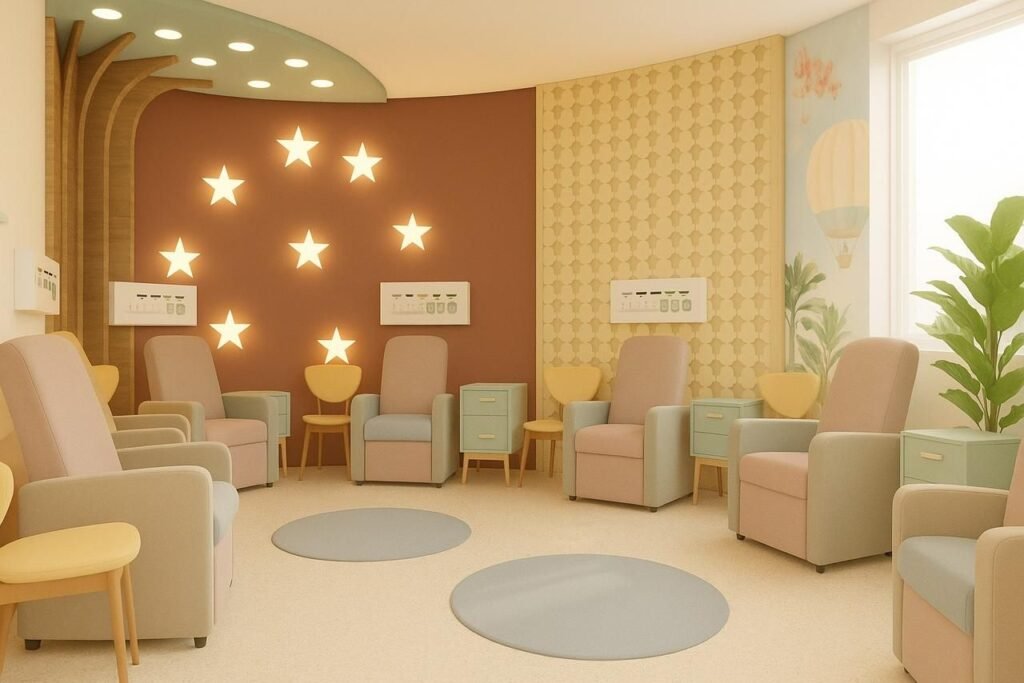 A capacidade para sessões de quimioterapia será significativamente ampliada: o número de poltronas passará de 19 para 43. Desse total, 13 serão destinadas exclusivamente ao atendimento de pacientes infantojuvenis, instaladas em uma ala com ambiência lúdica, pensada para tornar o tratamento mais acolhedor e menos traumático para crianças e adolescentes.