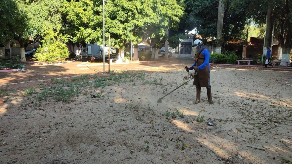 Também foram feitas roçagem e limpeza em praças nos bairros Castelo Branco e Aviação e nos canteiros centrais da Avenida José Ferreira Baptista. Nas Chácaras Califórnia, a Travessa Walt Disney passou por manutenção, com serviço de terraplenagem.