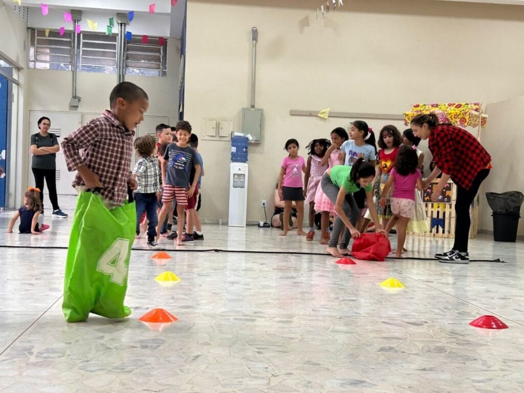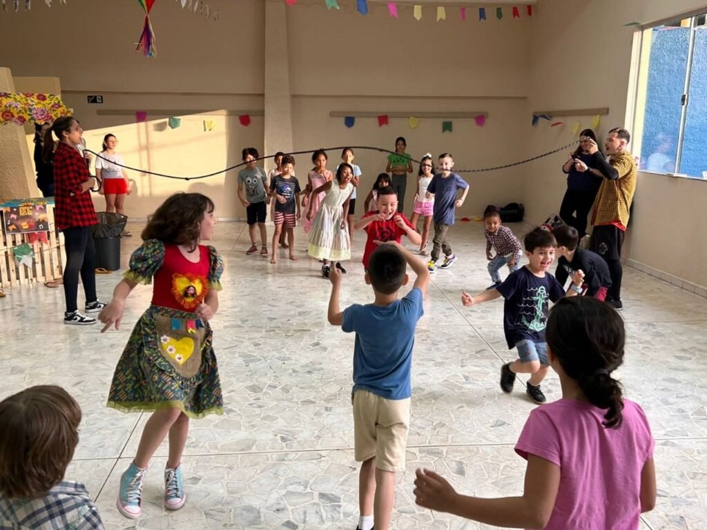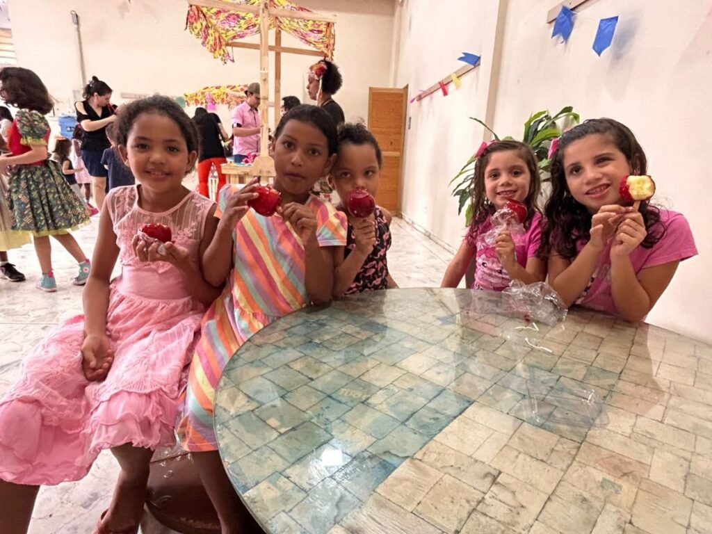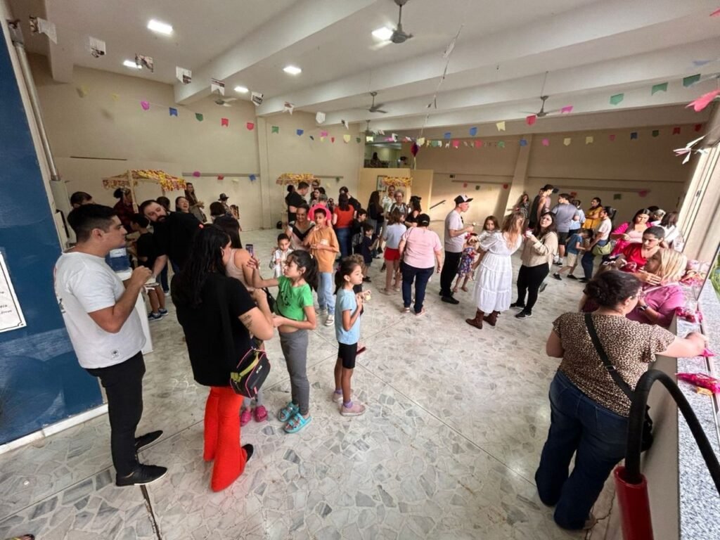A programação teve início às 16h com a contação da história “A Fogueira de Dona Sinhá”, voltada ao público infantil e adulto. Em seguida, foram abertas as barracas com comidas típicas e brincadeiras juninas, animando os presentes em clima de festa.
