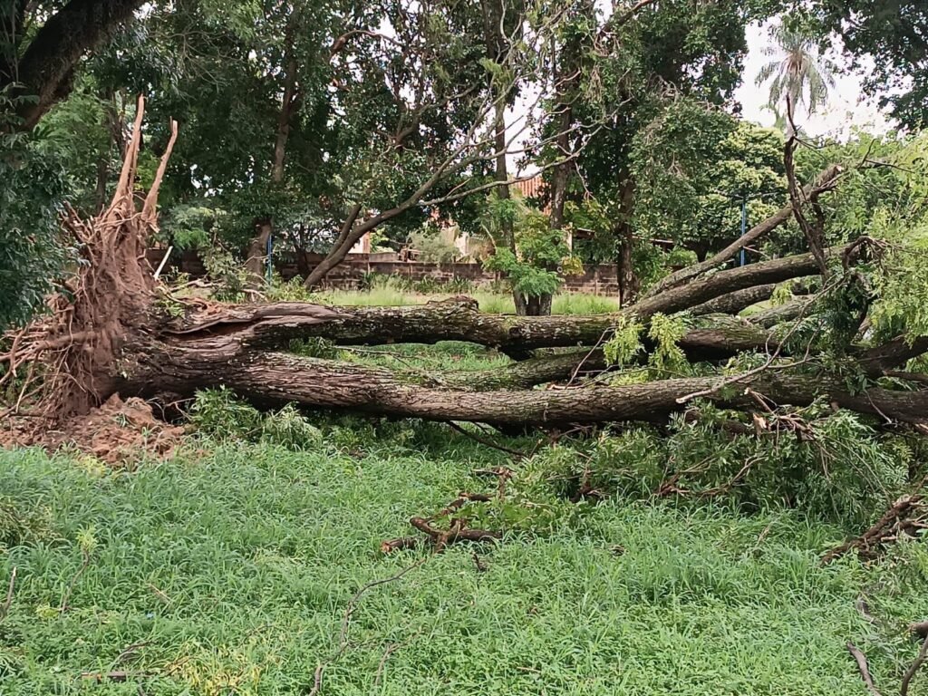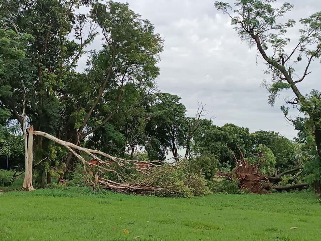 Entre as ocorrências registradas estão: queda de árvores e galhos de grande porte; danos em postes e na rede elétrica; interrupção parcial no fornecimento de energia; muros danificados e residências destelhadas; danos estruturais, incluindo o deslocamento de uma cobertura metálica de garagem de ônibus.