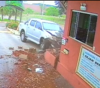 Vídeo: Câmeras flagram caminhonete desgovernada em alta velocidade atingindo guarita em Buritama