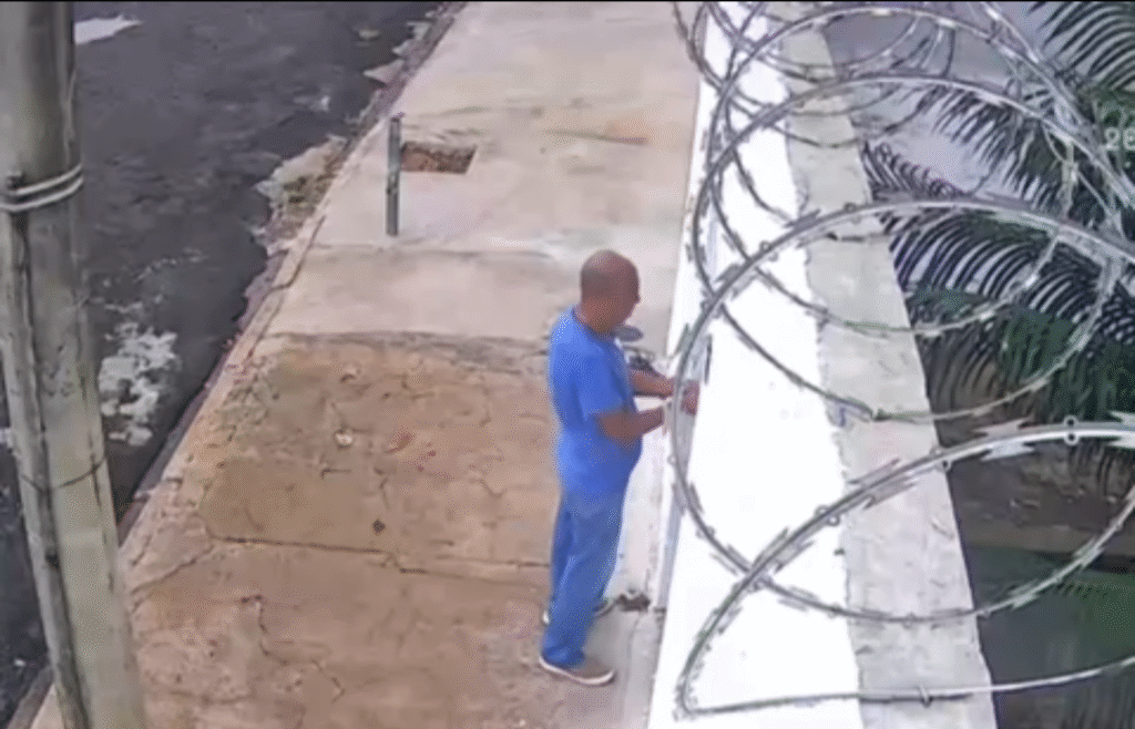 Pelas imagens é possível ver que o homem mexe no portão da residência e consegue entrar no imóvel. Ele só não esperava que o proprietário estivesse na residência. Ao perceber a presença do morador, ele deixa o local sem levar nada.