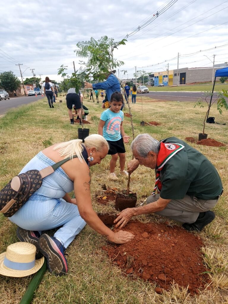 Cerca de 40 voluntários participaram, na manhã desta terça-feira (2), do plantio de 117 mudas de árvores nativas. A ação foi realizada às 9h, no canteiro da Rua Alice Santiago Zago, no Bairro Petit Trianon.
